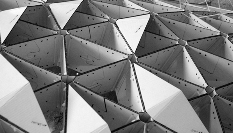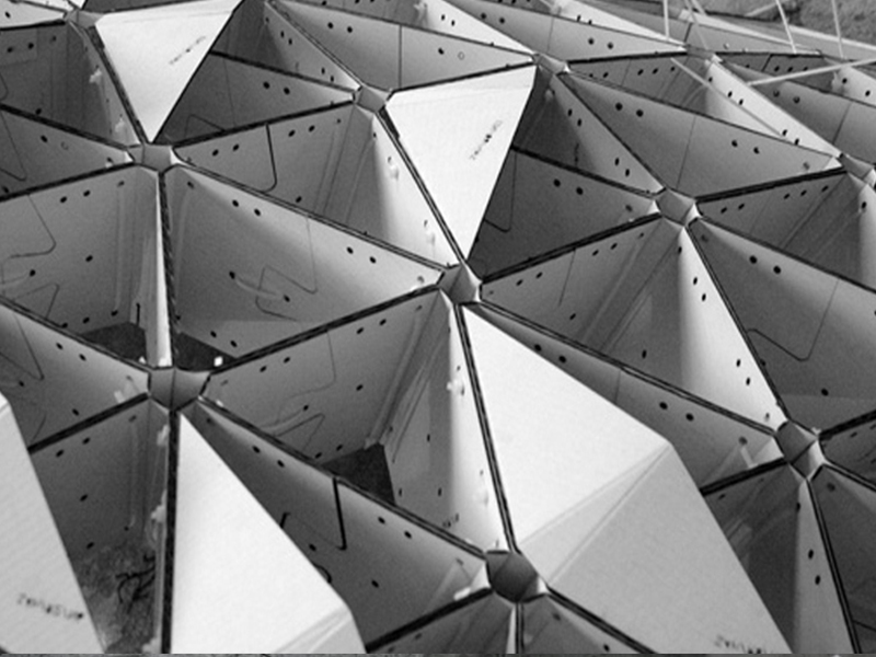 Digital model of the dome was developed in Top Solid. A simple model controlling the overall geometry was a base for almost 1200 triangular components, which were inserted and unfolded into other associated files. Thus every single change in the preliminary shape was followed by new series of 2d shapes ready for lasercutting.