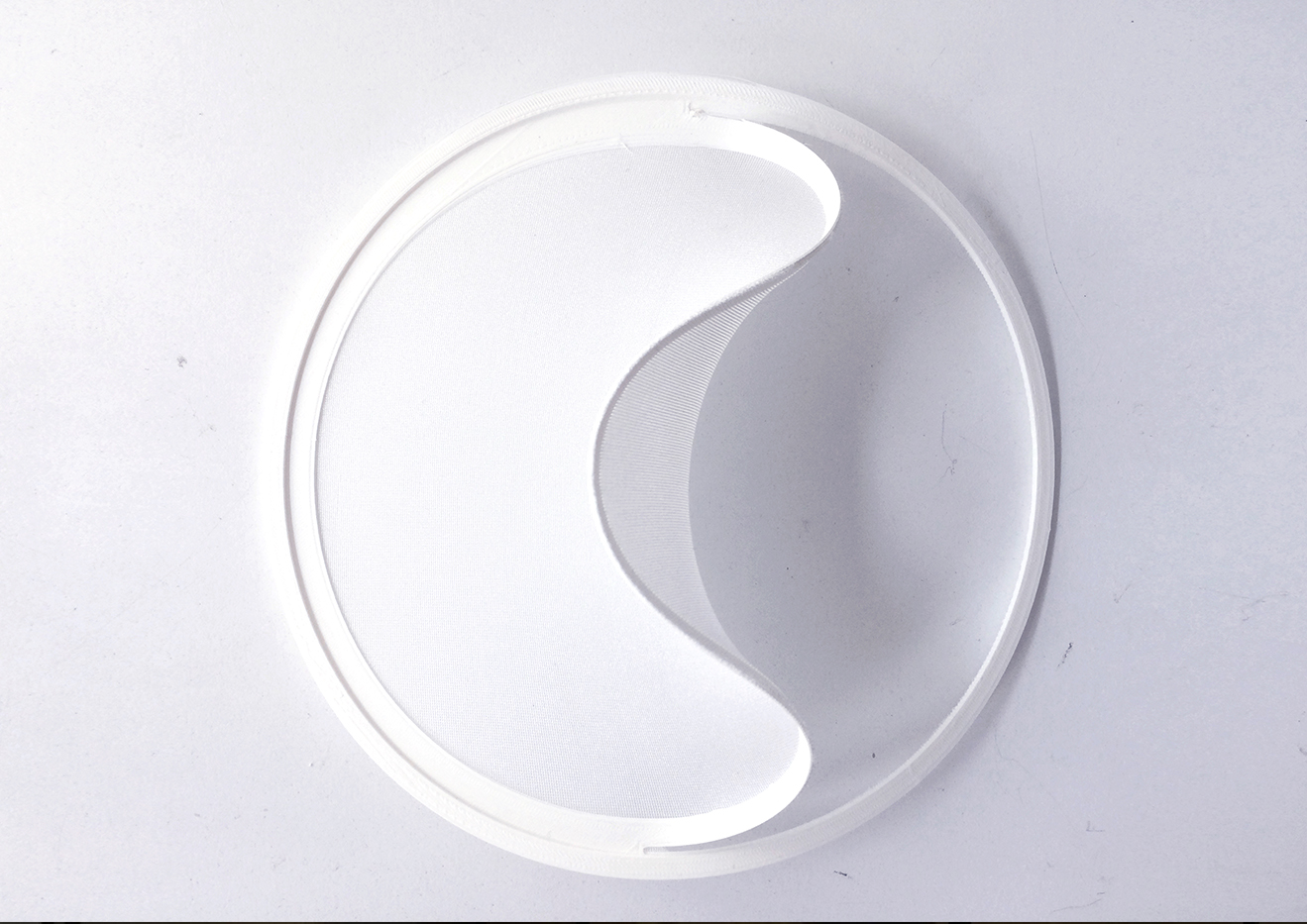 The course Self-Shaping Textiles focused on exploring the potential of 3D printing technology in combination with textiles and examined aspects such as performance, modularity and scalability as well as possible applications of textile structures in the architectural context. The design methodology uses the elasticity of the fabrics and their self-forming properties. A modular shading element was developed using 3D printing technology and prototyped in 1:1 scale.