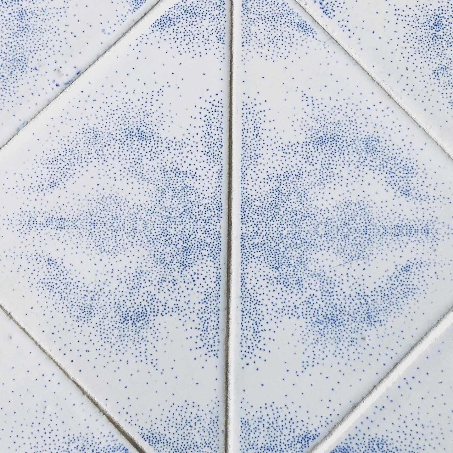 Handmade ceramic tiles designed by combining analog techniques such as clay forming and screenprinting with digital techniques for creating seamless patterns. This collection consists of three different triangular tiles which can be freely composed to create endless configurations. It is inspired by an older design of ceramic tiles which won the TILE AWARD 2017 initiated by AGROB BUCHTAL in collaboration with AIT- Dialog.