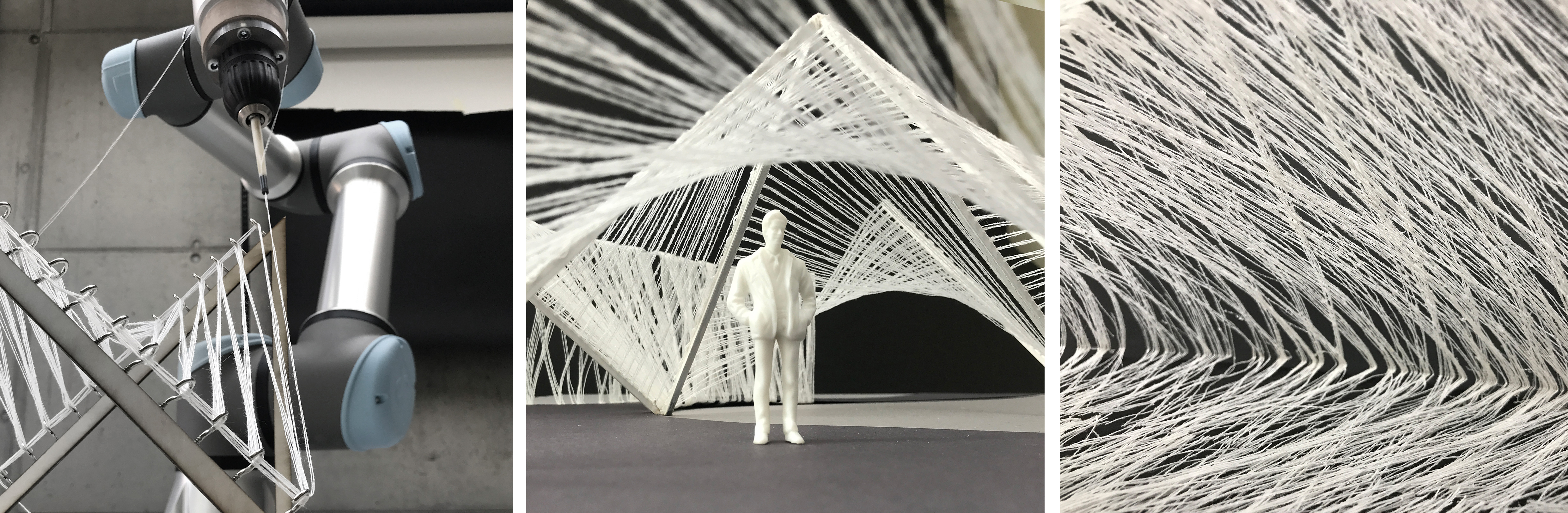 We looked at processes such as spatial fiber placement or winding as a way to develop new techniques for textile constructions. Usually, robotic fibrous constructions are put into a form and stiffened by resin and therefore bereft of the intrinsic properties of the fibers such as softness and flexibility. In this project, on the contrary, we explored fibrous structures by embracing the material characteristics of fibers, whether they are soft or hard, elastic or firm, smooth or rough. Finally, we experimented with the materiality and scale of fibers, challenging their proportions and observing how certain material characteristics affect the production technique. Hands-on experiments and physical prototyping were the core methodologies for the project development.