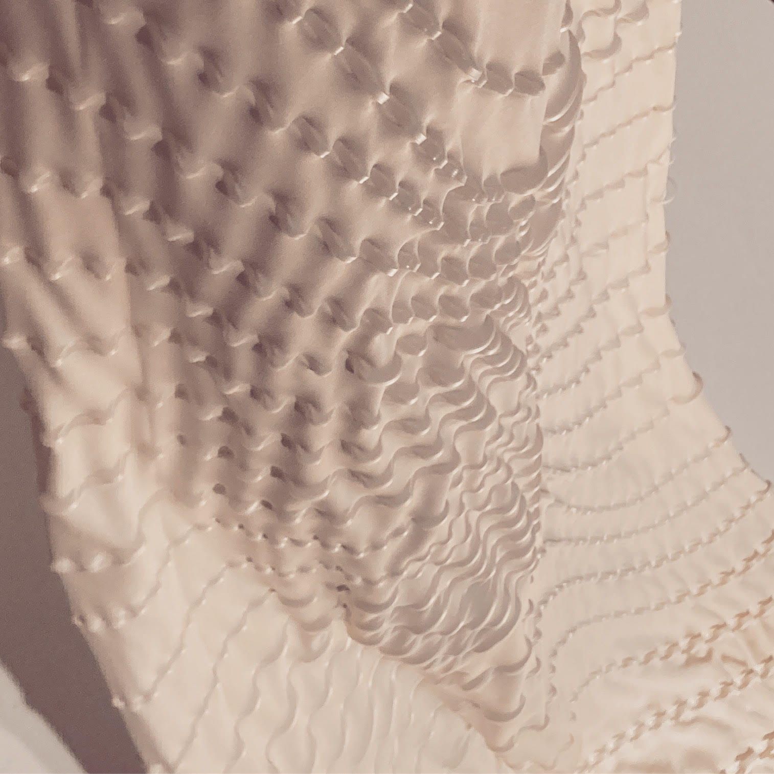 Pic. Large-scale prototype of 3D printed pattern on pre-stretched fabric (Agata Kycia & Lorenzo Guiducci). The piece is one meter wide and seven meters long